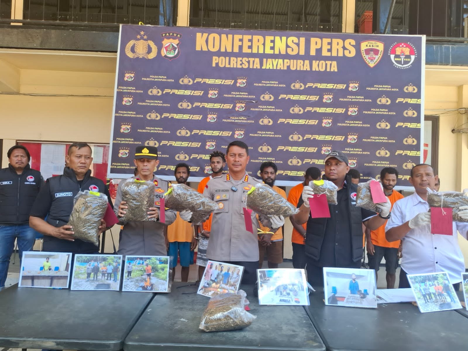 Jayapura,JayaTvPapua.com. – Satuan OPSNAL RESNARKOBA Polresta Jayapura berhasil mengamankan 7. 053 kg Narkoba golongan 1 jenis ganja dari 11 orang tersangka terdiri dari dua orang merupakan WNA Papua Nugini (PNG) dan 9 lainnya WNI.
