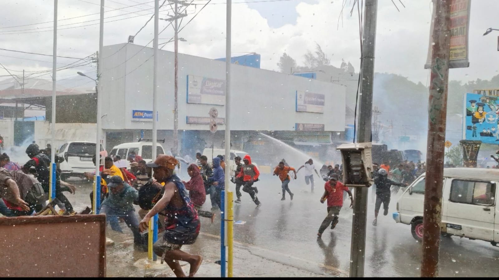 Ketegangan kemudian meningkat dan berujung pembubaran paksa oleh aparat keamanan. Massa yang menolak membubarkan diri mulai melempar batu ke arah petugas, sementara aparat berusaha mengendalikan situasi dengan langkah pengamanan, dengan melakukan penembakan gas air mata, dan juga penyemprotan air menggunakan AWC milik Polres Jayapura Kota.