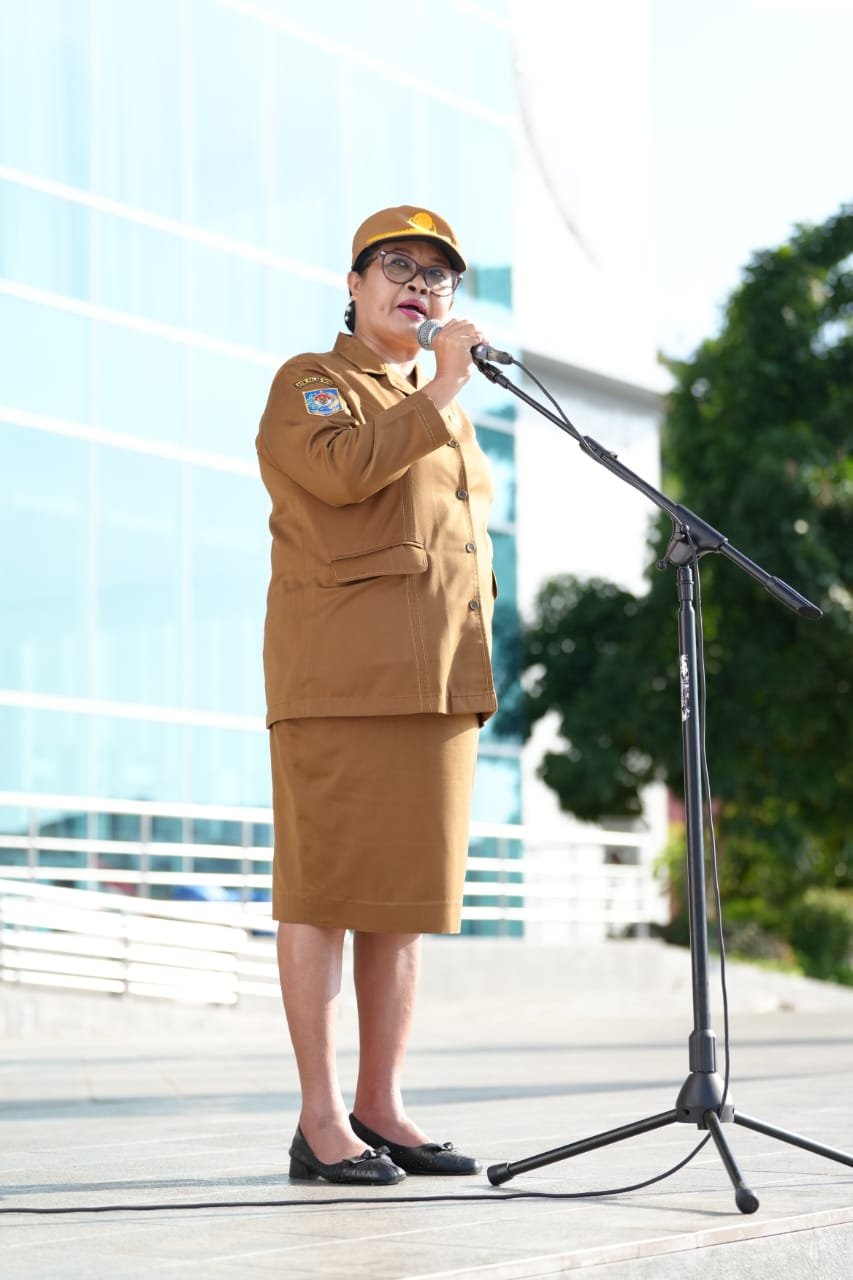 Suzana D. Wanggai, S.Pd., MSocSc, memimpin Apel Gabungan di halaman Kantor Gubernur Papua, mewakili Penjabat Gubernur yang sedang dalam rangkaian kunjungan kerja di Kota Jayapura.