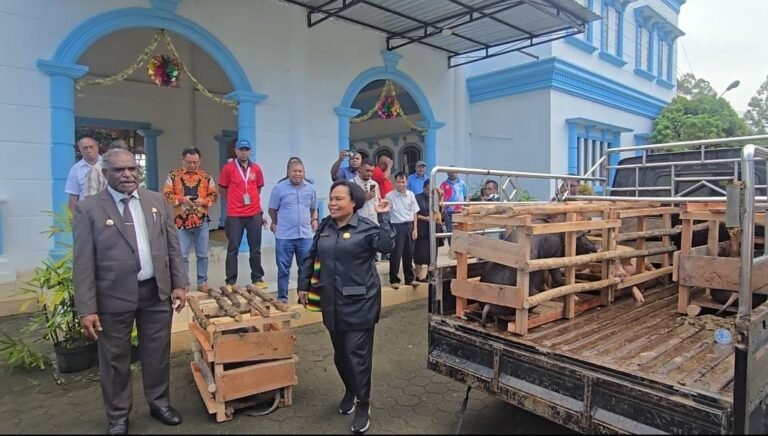 Jayapura — Pemerintah Kota Jayapura menyalurkan bantuan berupa 100 ekor babi dan beras kepada 100