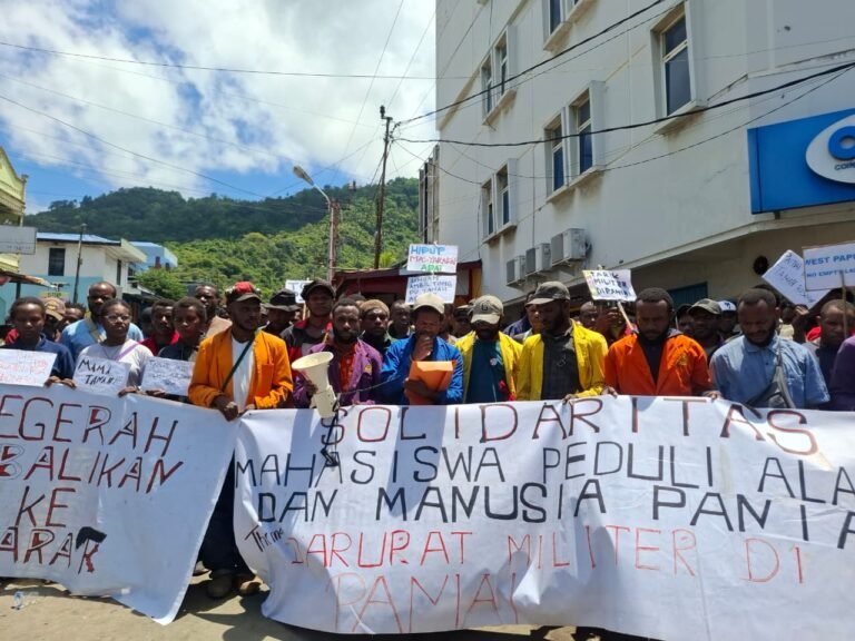 Jayapura,JayaTvPapua.com. – Solidaritas Mahasiswa Peduli Alam dan Manusia Paniai menggelar aksi damai di Lingkaran Abepura,