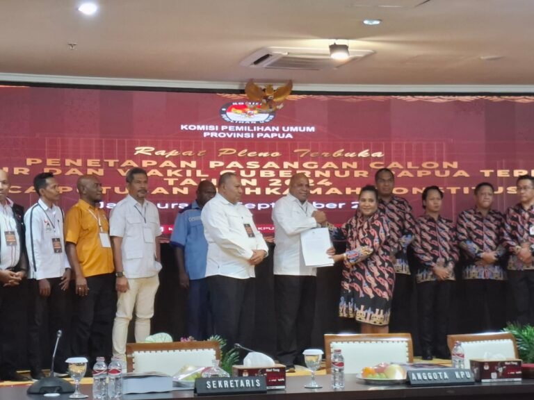 Jayapura,JayaTvPapua.com. – Komisi Pemilihan Umum (KPU) Provinsi Papua resmi menetapkan pasangan Matius Fakhiri, S.I.K., dan