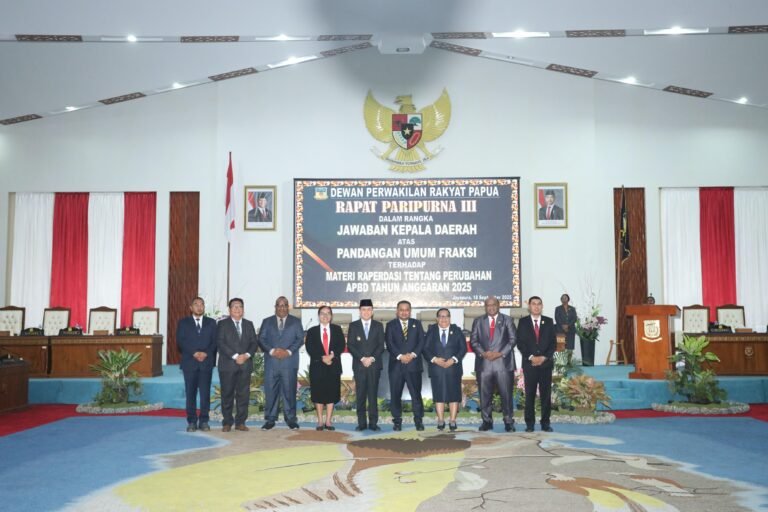 Jayapura. Penjabat (Pj) Gubernur Papua Agus Fatoni menyampaikan jawaban atas pandangan umum fraksi-fraksi Dewan Perwakilan