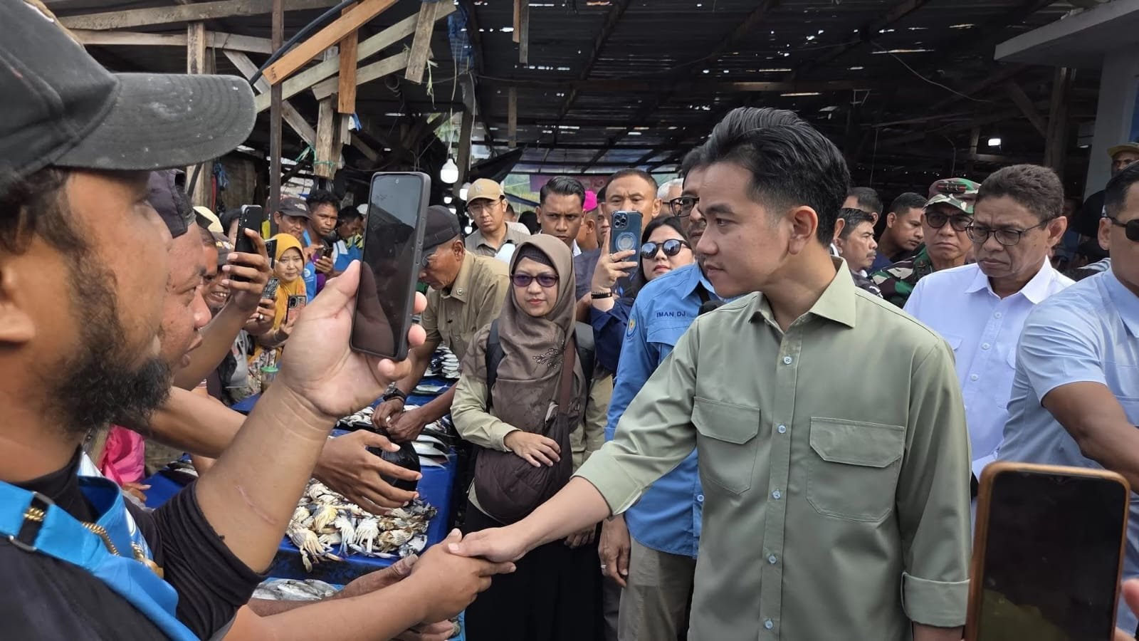 Wapres Gibran saat berjabat tangan dengan para nelayan yang sedang berjualan (18/9/2025)