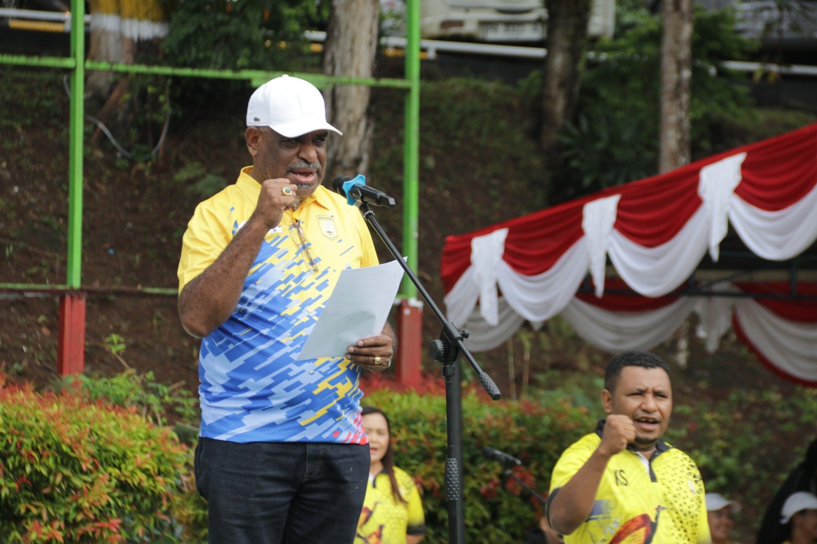 Walikota Jayapura, yang juga menjabat sebagai Ketua KONI Kota Jayapura, menyampaikan apresiasi atas momentum peringatan Haornas tahun ini. Ia menegaskan bahwa olahraga memiliki peran vital dalam membentuk masyarakat yang sehat, bugar, dan kuat.