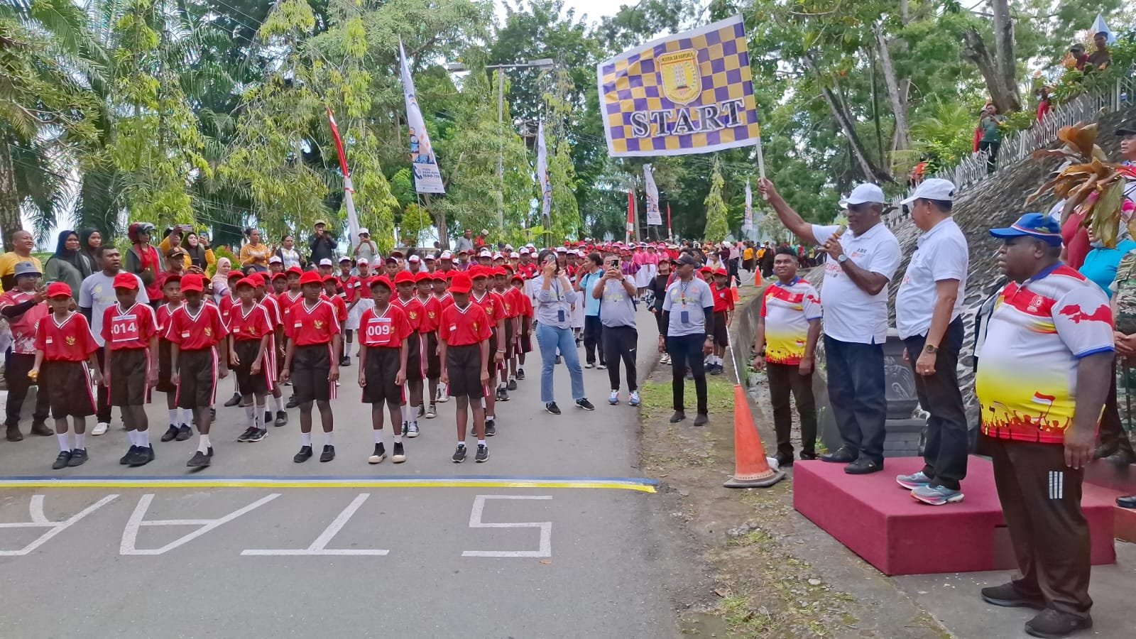 “Selamat bertanding dalam gerak jalan bagi seluruh peserta. Junjung sportivitas. Kita isi kemerdekaan ini dengan membangun disegala bidang dalam NKRI di Tanah Papua,” ujarnya.
