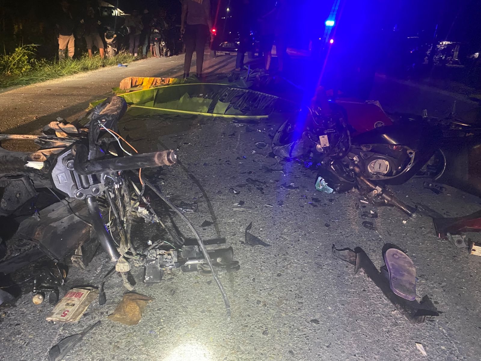 “Laka maut tersebut terjadi lantaran pengendara SPM Yamaha MT-15 berkendara dalam keadaan pengaruh alkohol dan dalam kecepatan tinggi hingga hilang kendali, sementara fatalitas kecelakaan terjadi karena masing-masing pengendara tidak menggunakan helm saat naik berkendara dengan roda dua ketika kejadian,” imbuh Kasat.
