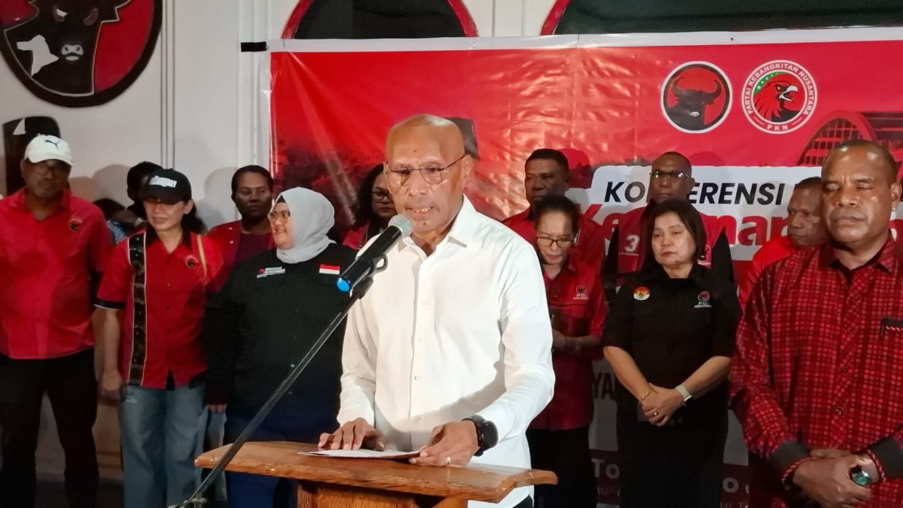 Benhur Tomi Mano dalam Konfersi pers mengatakan” kemenangan ini adalah kemenangan rakyat papua,sebagai partai pengusung PDI perjuangan bersama Partai Kebangkitan Nasional, hanyalah simbol admitratif kemenagan ini lahir dari suara rakyat papua, yang menginginkan perubahan,kemajuan dan keadilan dan ini adalah hadiah natal bagi seluruh rakyat papua”.ujarnya