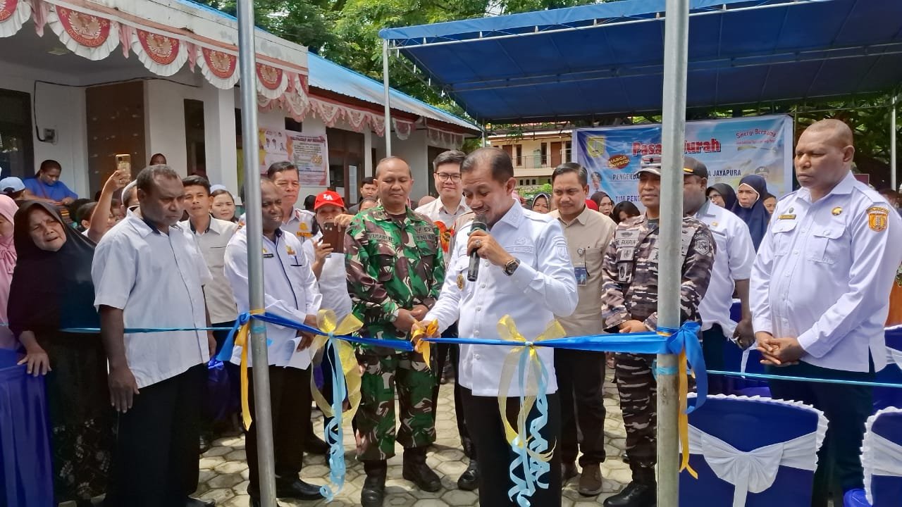 Pemotongan pita pasar murah sembako oleh Wakil walikota jayapura Rustan Saru di kantor Kelurahan Wai Mhorock distrik Abepura pada(19/3/25)