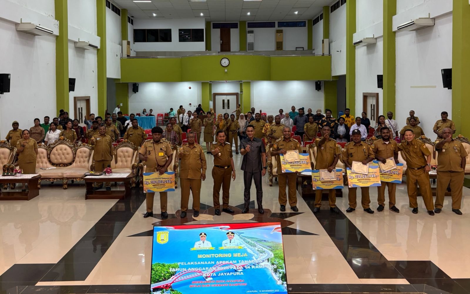 Pada monitoring meja tersebut, Pemkot Jayapura juga menetapkan lima kampung terbaik yang dinilai melalui penyerapan anggaran, penanganan stunting, pendidikan, BPJS, kebersihan, dan ketepatan pengelolaan keuangan.