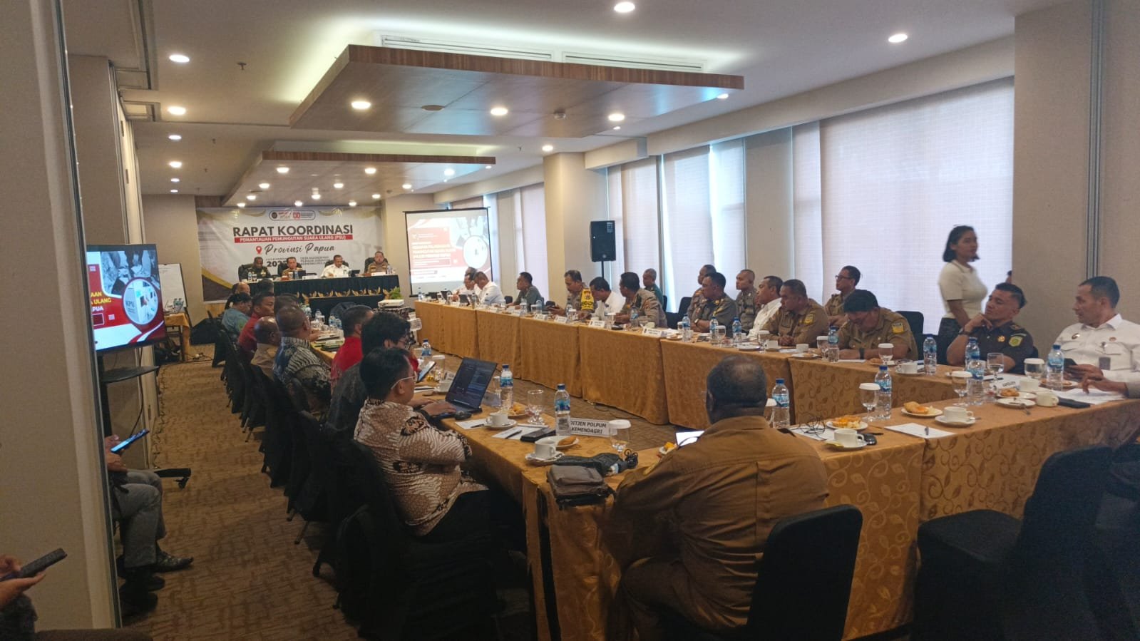 “Saya juga berterima kasih tadi Pak Deputi sudah menyampaikan sebagai ketua tim melakukan monitoring evaluasi kesiapan PSU di Papua, yang secara umum sudah siap. Tugas kami di pemerintah memberikan dukungan dan fasilitas,” tambah Fatoni.