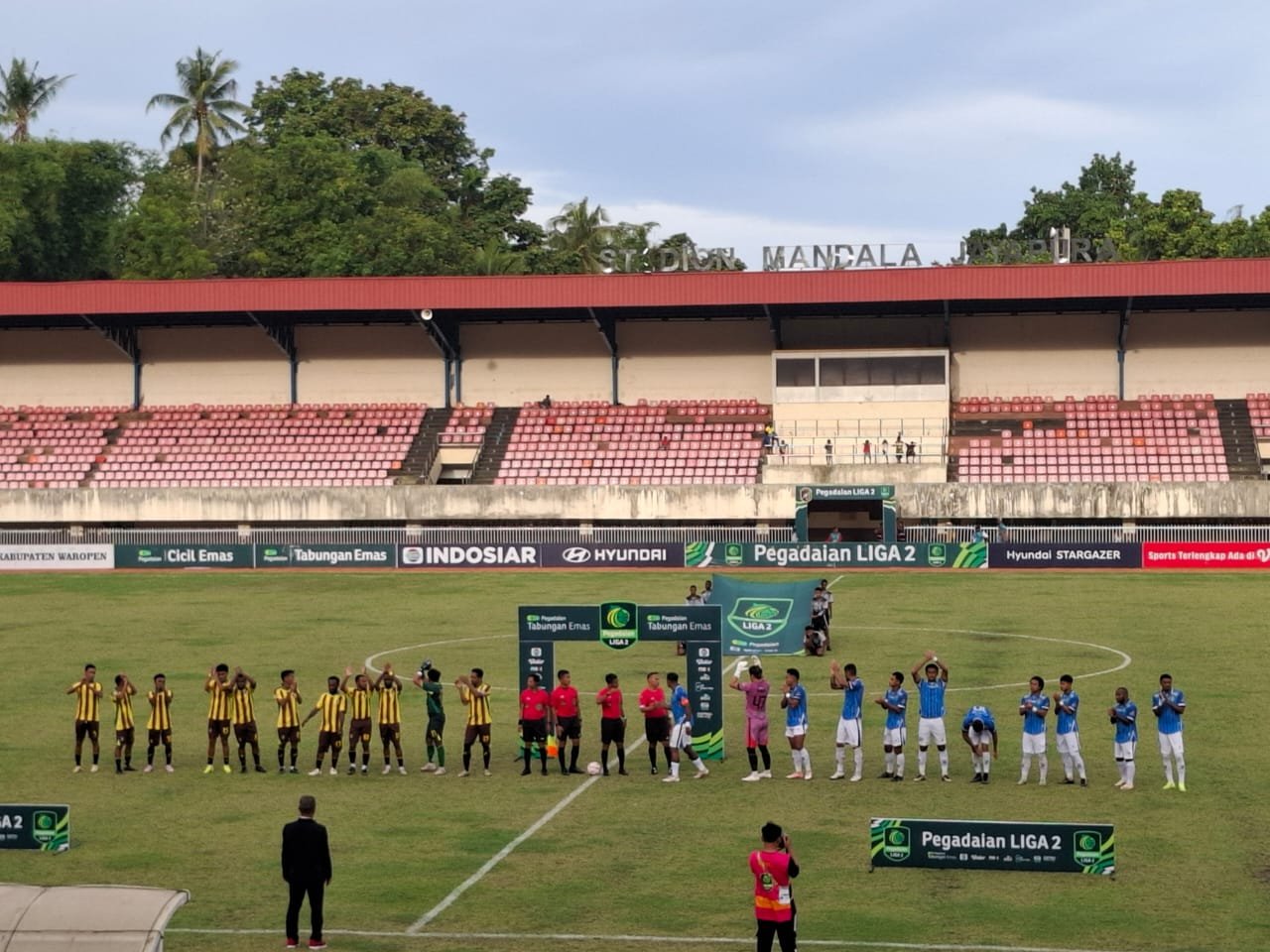 Jayapura,JayaTvPapua.com. – kompetisi Pegadian Liga 2 Play off degradasi mempertemukan tuan Rumah Persewar Waropen menjamuh tamunya Persibo di stadion mandala kota jayapura,selasa 25 febuari 2025 waktu indonesia timur.