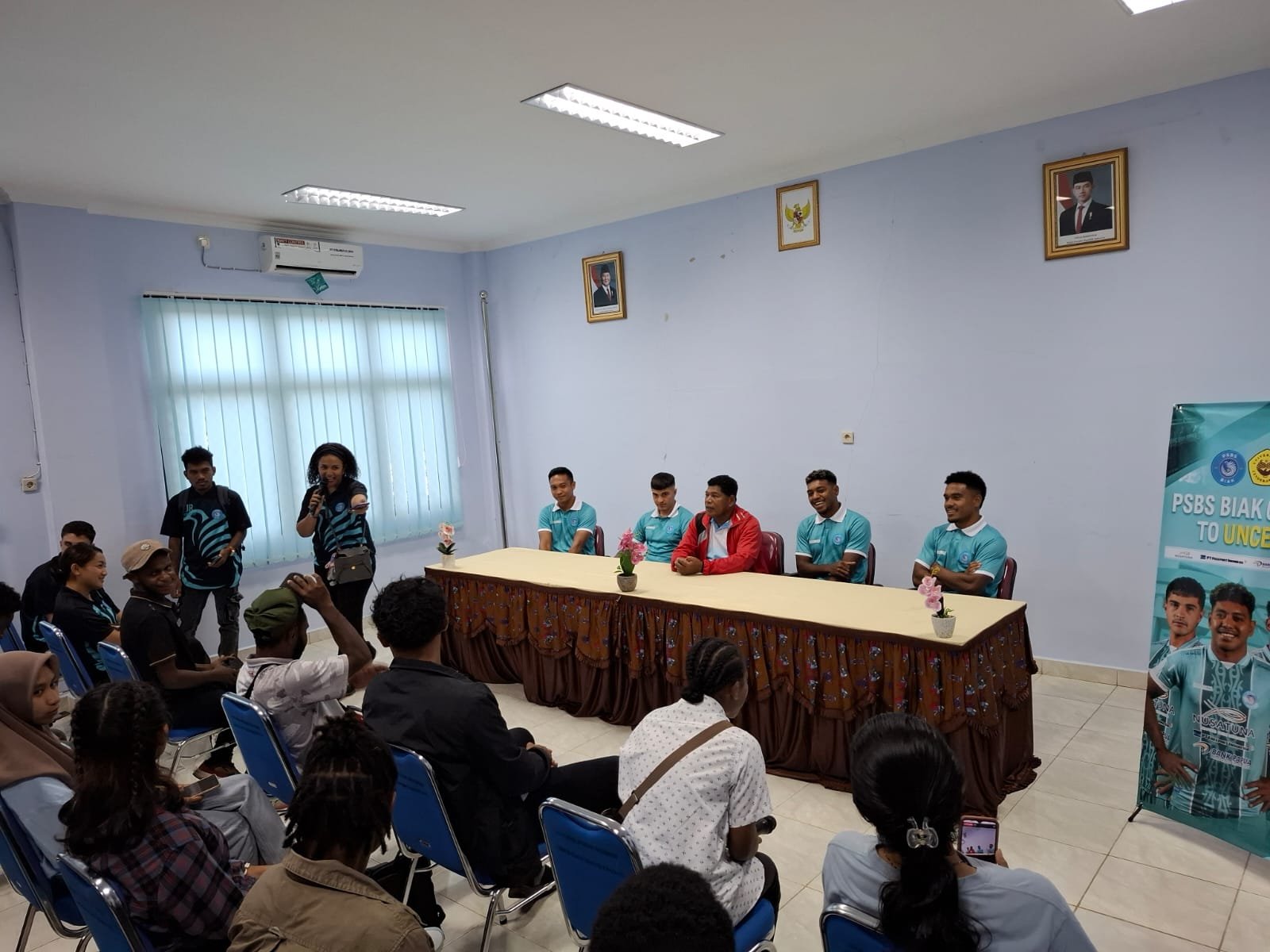 Suasana Kunjungan Tiga Pemain PSBS Dalam Ruangan Aula Fakultas Ilmu Keolahragaan Universitas Cenderawasih (23/01/2025)