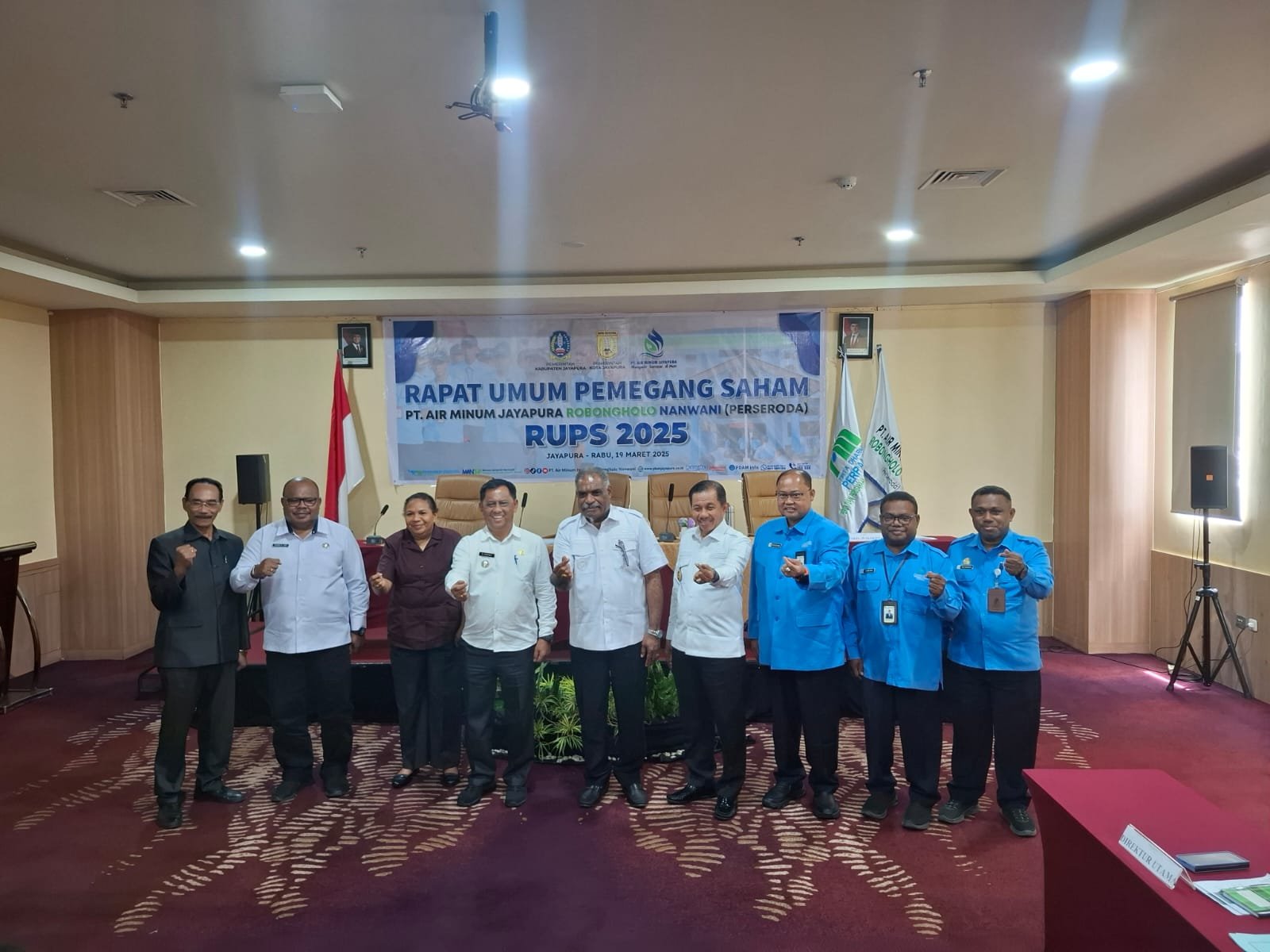 Jayapura,JayaTvPapua.com. – PT. Air Minum Jayapura Robongholo Nanwani (Perseroda) menggelar Rapat Umum Pemegang Saham(RUPS) bersama pemerintah kabupaten Jayapura dan Pemerintah Kota Jayapura,berlangsung di salah satu hotel di Kota Jayapura, Rabu (19/3/25).