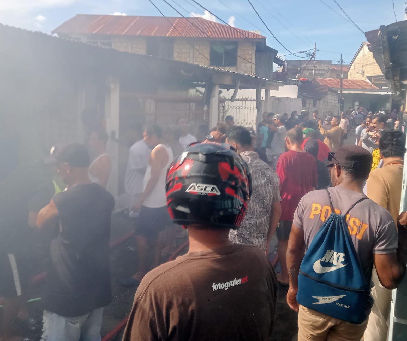 “Menurut keterangan saksi di lokasi kejadian, awalnya saksi melihat api berasal dari rumah milik Yan Pepuho tepatnya di bagian plafon pada lantai dua rumahnya, keluar asap dari sana yang diduga akibat korsleting listrik. Namun ada juga yang menyampaikan bahwa api berasal dari rumah milik Alm. H. Baso dimana istrinya baru saja selesai memasak kemudian keluar pergi meninggalkan rumah,” ungkap Kapolsek.