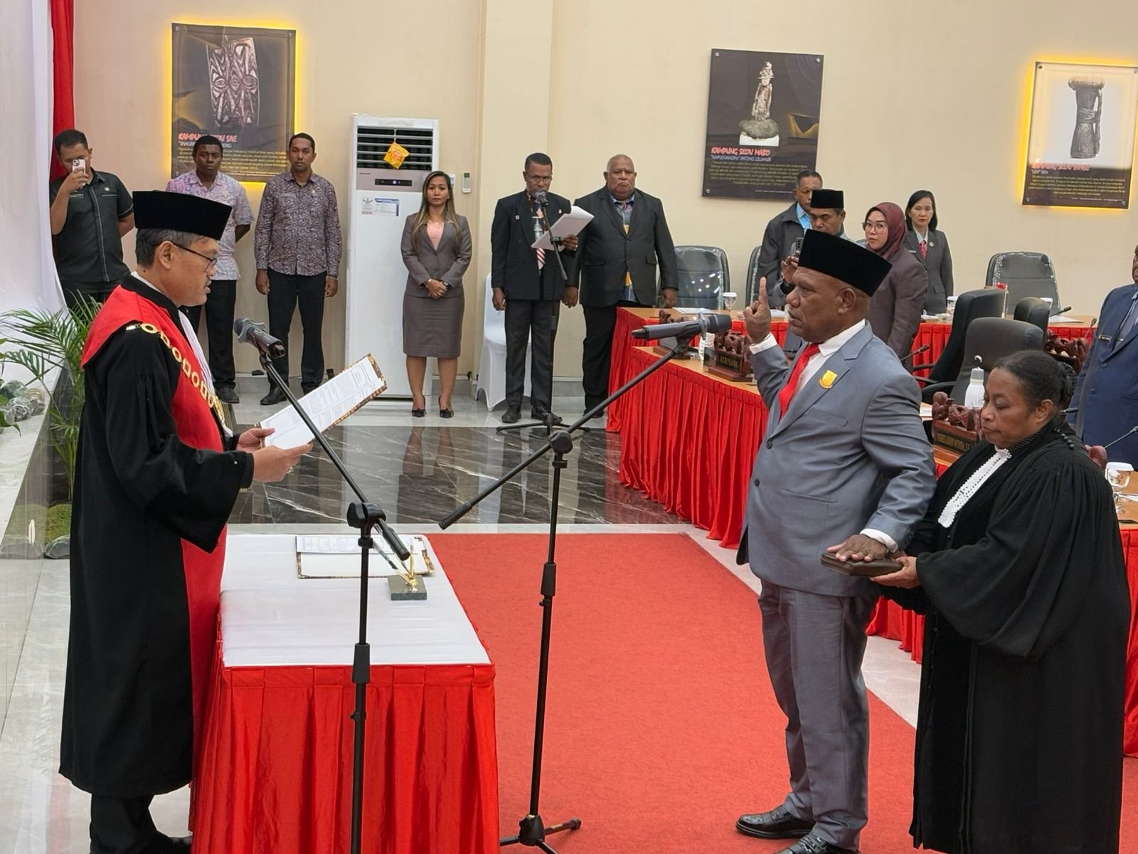 Pelantikan dilakukan melalui pengambilan sumpah janji oleh Ketua Pengadilan Negeri Kelas IA Jayapura, berdasarkan Surat Keputusan Gubernur Papua Nomor 100.3.3.1/GAP.381/2025 tentang Peresmian Pimpinan Wakil Ketua III DPRK Jayapura periode 2024–2029.