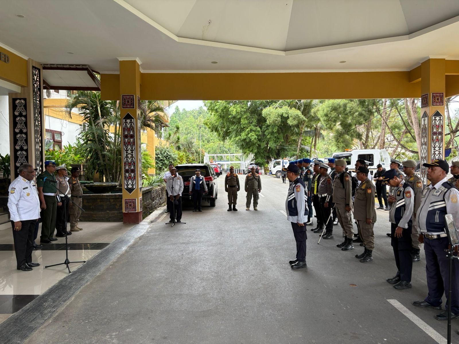 Apel gabungan ini dilaksanakan di Halaman Main Hall Kantor Wali Kota Jayapura, Rabu (7/1/2026) dengan melibatkan Tim Satuan Tugas Penertiban dan Penindakan Parkir Liar Kota Jayapura yang terdiri dari Dinas Perhubungan, Satpol PP, TNI, Polri, BPTD, serta Kejaksaan.